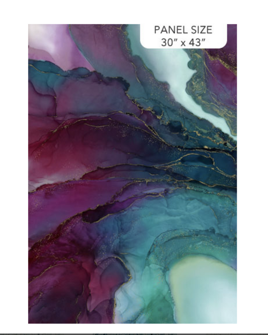 Midas Touch Quilting Fabric Panel in Plum/Teal with delicious Gold highlights by Northcott Studios - DM26921-28