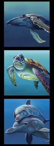 Chris Riley Australian Ocean Animal art fabric panel - Whale Dolphin Turtle - quilting & craft cotton - great for placemats, quilts, table runners - great gift