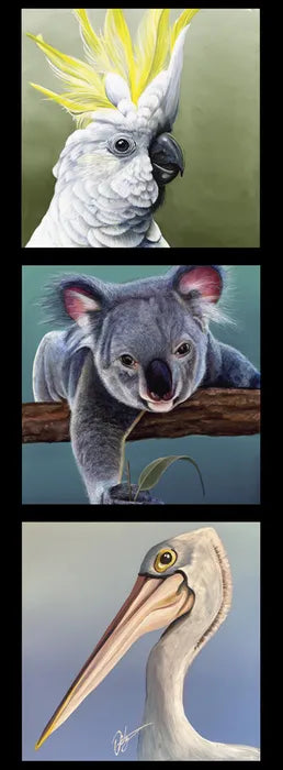 Chris Riley Australian Animal art fabric panel - Pelican Koala Cockatoo - quilting & craft cotton - great for placemats, quilts, table runners - great gift