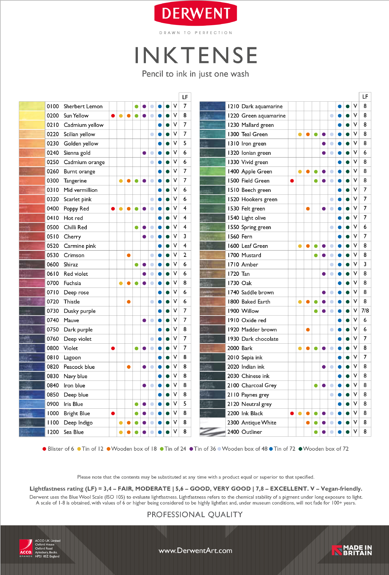 This inktense range is perfect for illustrators, flower artists, fashion designers and textile artists. Once colours are wetted they dry quickly meaning very little bleed occurs so colours can be positioned next to each other without bleeding into each other.