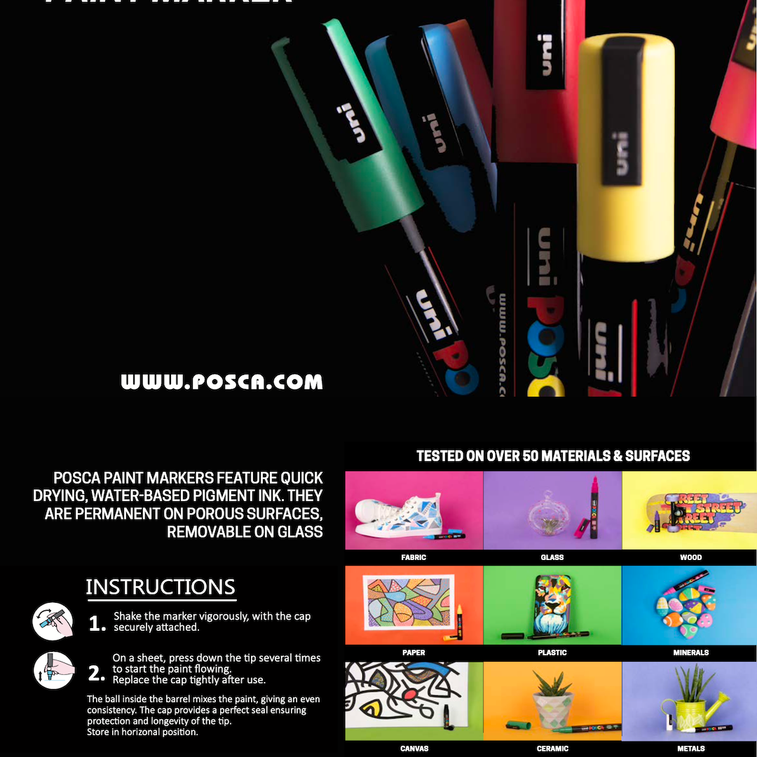 I love Posca Pens!  Posca by Uni are Acrylic paint markers which are permanent on nearly every surface including fabric and leather. They are non toxic - fast drying - lightfast - acid free