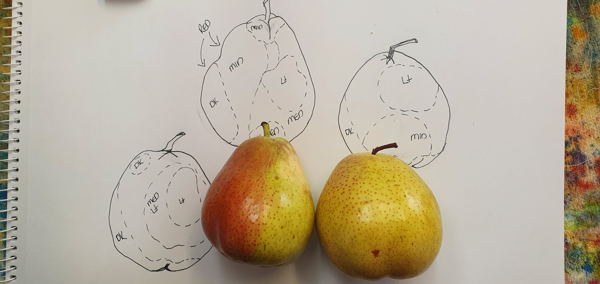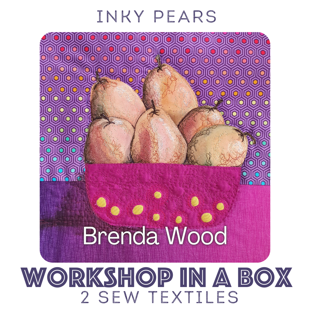 About THIS workshop box:  Join Brenda and create a bowl full of your own fabrics and subjects for this fruity workshop using Acrylic inks and Posca Pens