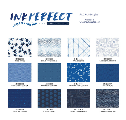 INKPERFECT Fabric Collection - Indigo Edition - per half metre - with free .pdf pattern